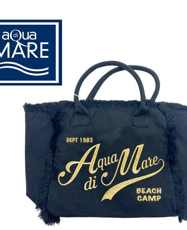 BORSA MARE AQUA DI MARE CON FRANGE RICAMO LUREX ORO PICCOLA, COLORE: NAVY