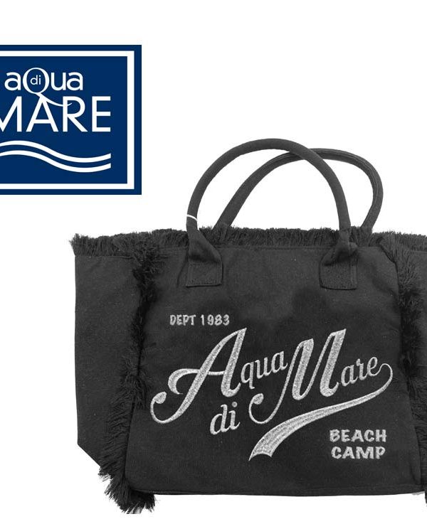 BORSA MARE AQUA DI MARE CON FRANGE RICAMO LUREX SILVER PICCOLA, COLORE: NERO
