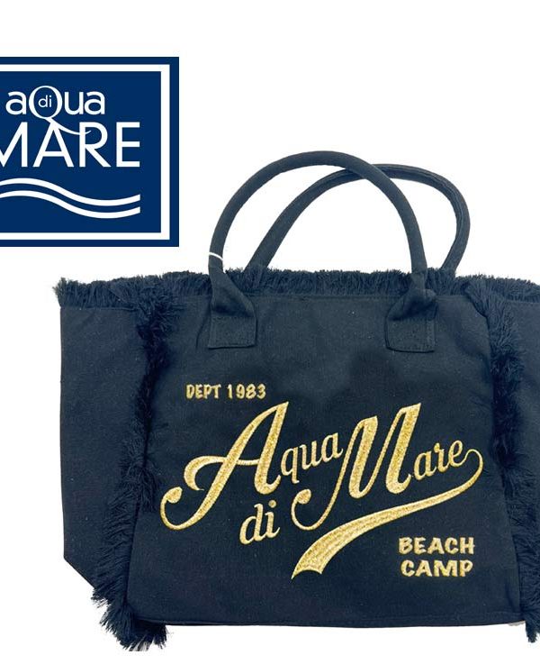 BORSA MARE AQUA DI MARE CON FRANGE RICAMO LUREX ORO GRANDE, COLORE: NAVY