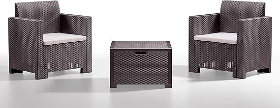 SET SALOTTO NEBRASKA TERRACE ECORATTAN CON CUSCINI SEDUTA, COMPOSTO DA: 2 POLTRONE CM.75X57,5H79 + 1 TAVOLO CM. 64X64H40
