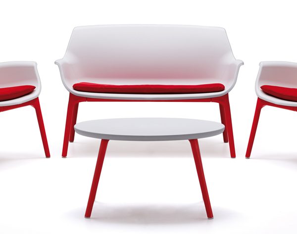 SET LUXOR LOUNGE BIANCO/ROSSO COMPOSTO DA: 1 DIVANO E 2 POLTRONE CON CUSCINI SEDUTA + 1 TAVOLINO
