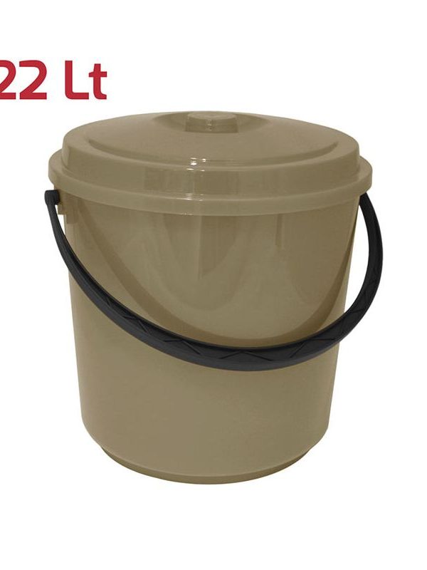 BIDONE IMMONDIZIA CON MANICO E COPERCHIO 22LT, COLORE: MOCHA