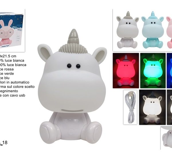 LAMPADA LED UNICORNO 30CM RICARICABILE CON CAVO USB, COLORI ASSORTITI
