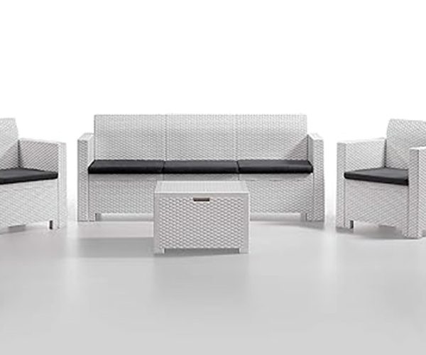 SALOTTINO NEBRASKA 5 POSTI-BIANCO -ARREDO GIARDINO-2 POLTRONE,1 DIVANO, 1 TAVOLINO 5 CUSCINI